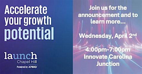 Launch Chapel Hill is joining forces with KPMG, a global leader in professional services, to design "Launch Powered by KPMG"—an AI-enabled, next-generation accelerator model that redefines how startups transition from ideation to market launch. In today’s rapidly evolving tech landscape, the needs of startups are shifting. Join us to explore how this new model is addressing those changes and what it means for the future of entrepreneurship.