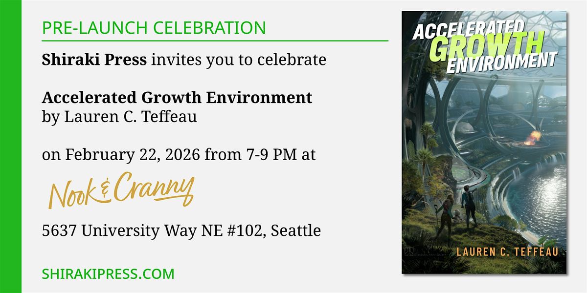 It's almost here! Join us in person at Nook & Cranny for the Accelerated Growth Environment pre-launch party. Meet the author, Lauren C. Teffeau and celebrate Shiraki Press' debut title!
