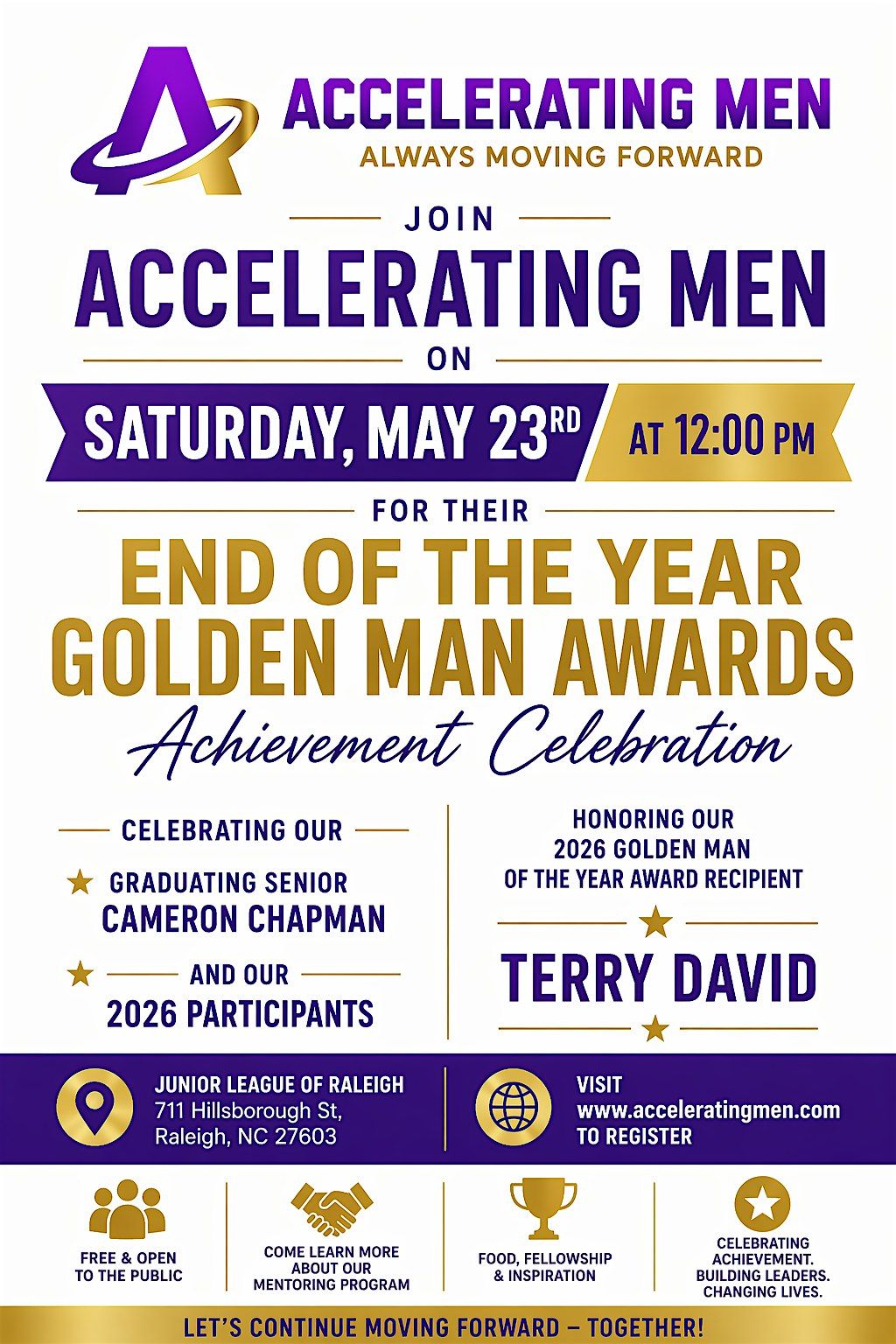 Info: Help Accelerating Men Celebrate 12 years of Mentorship across Wake County and surrounding areas.