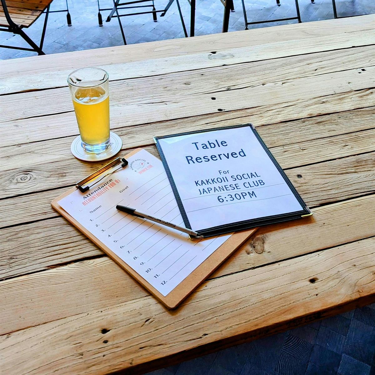 🍺 6:30pm to 7:15pm – Grab a drink (happy hour 'til 7pm); guided Japanese convo warmup; sign in with your goal for the day on the Accountability Attendance Sheet