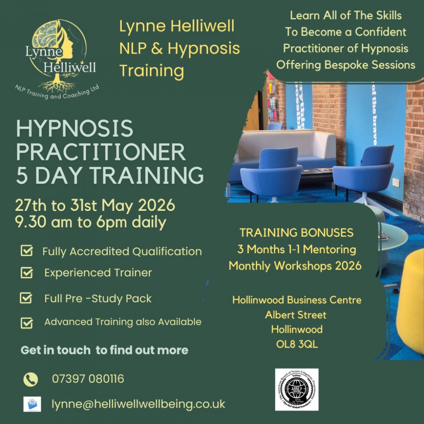 Accredited Hypnosis Practitioner Training 5 days Face to Face Training