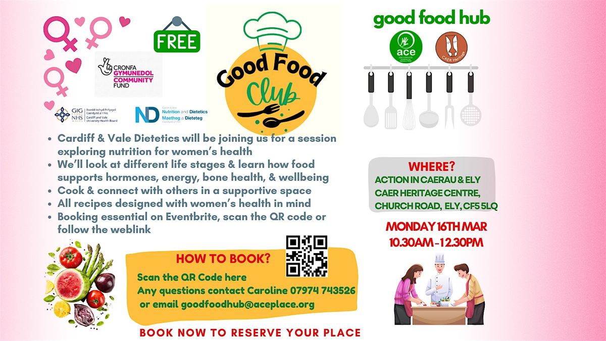 Welcome to our next Good Food Club event at CAER Heritage Centre! Join us for a fun session where you can try tasty dishes, share recipes and learn about all sorts of foods. This time, we’ll be focusing on women’s health, exploring practical nutrition tips and simple dietary changes that support wellbeing through different life stages. With guidance from one of our local dietician, we’ll look at how nutritional needs shift during key phases of a women's life in particular, reproductive years, menopause, and healthy ageing. We'll learn how everyday ingredients can be transformed into meals that nourish and empower women at every step. After our fun, hands‑on cooking session centred on dishes designed to support women’s health, we’ll sit down together to share and enjoy the meals we’ve created. Helpful information booklets will also be available to take home, offering further insights into nutrition across women’s life stages.Spaces are limited, so make sure you secure your spot. And don’t forget — we’re starting at 10.30am.