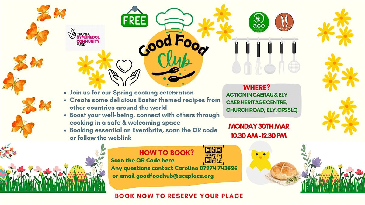 Welcome to our next Good Food Club event at CAER Heritage Centre! Join us for a fun session where you can try tasty dishes, share recipes and learn about all sorts of foods. This session we’ll be celebrating spring with a global Easter twist! Together we’ll be cooking traditional Easter dishes from around the world. It’s a chance to explore different cultures, try new recipes and discover how Easter is celebrated around the world. We’ll enjoy a relaxed, friendly session full of great food, shared stories and seasonal inspiration. We have limited places so booking is essential.