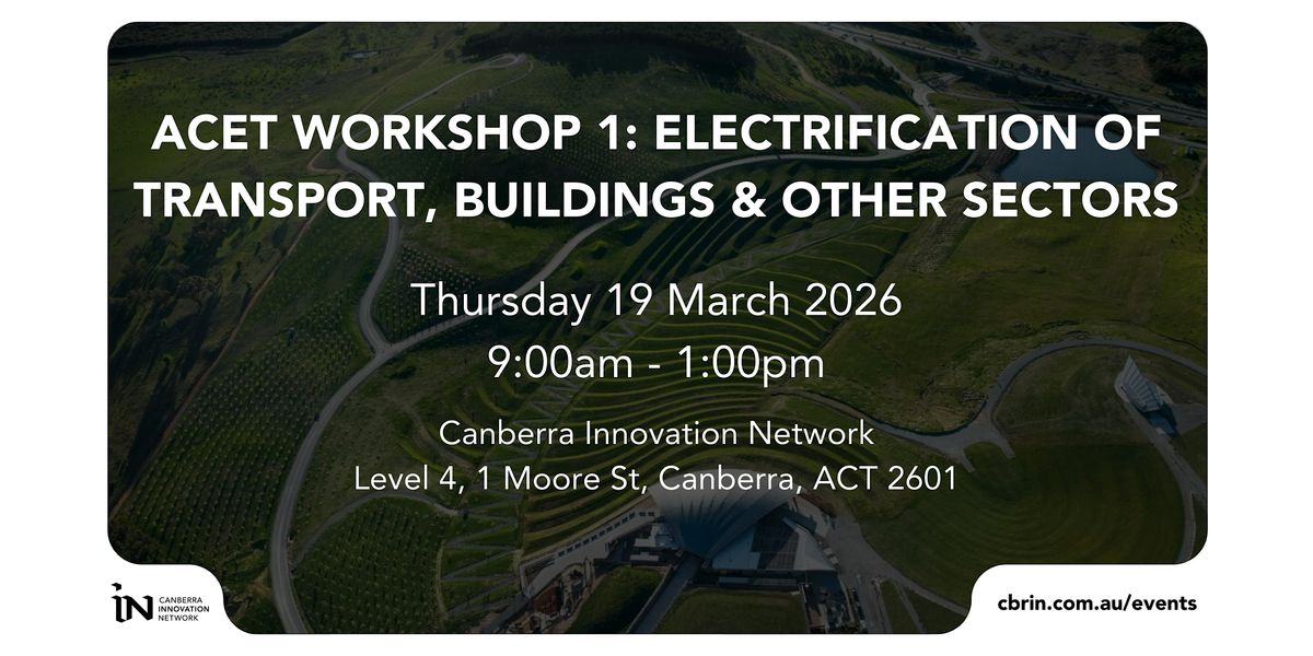CBRIN's Accelerating Canberra's Energy Transition project (ACET) is funded by the ACT Government through the Energy Innovation Fund and delivered by CBRIN in partnership with ANU, University of Canberra, UNSW Canberra, CIT, and NEVCE. The full program includes four thematic workshops, a Zero-Emissions-Transport Hackathon, business support for energy startups and SMEs, and an Energy Innovation Showcase in late 2026.