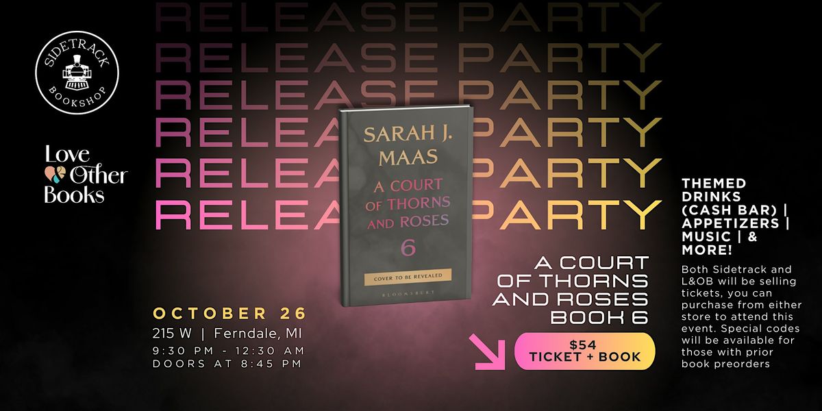 Sidetrack Bookshop and Love & Other Books are collaborating in honor of the newest installment in Sarah J. Maas' A Court of Thorns and Roses series. We are excited to bring you an ACOTAR experience with themed drinks (cash bar), appetizers & snacks, music, and more!
