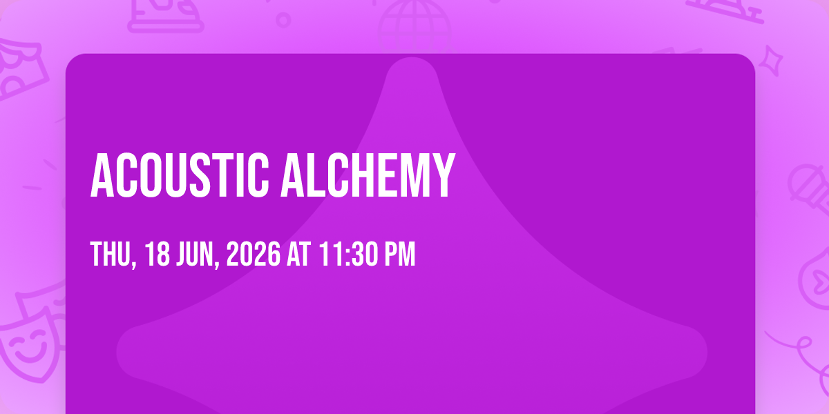 π Location: 39.1439, -84.5212π Welcome to Acoustic Alchemy, where dreams come alive and possibilities are endless! ποΈ Join us at Live at the Ludlow Garage in the heart of Cincinnati, OH for an event that defies expectations. π On June 18th, 2026 at 11:30 PM, be part of something truly extraordinary as we bring together innovation, entertainment, and pure magic. β¨ Every aspect has been carefully designed to ensure an unforgettable experience for all our guests. Whether you're seeking adventure, inspiration, or simply a break from the ordinary, this event promises to deliver beyond your wildest dreams. π Prepare for a journey into the extraordinary!