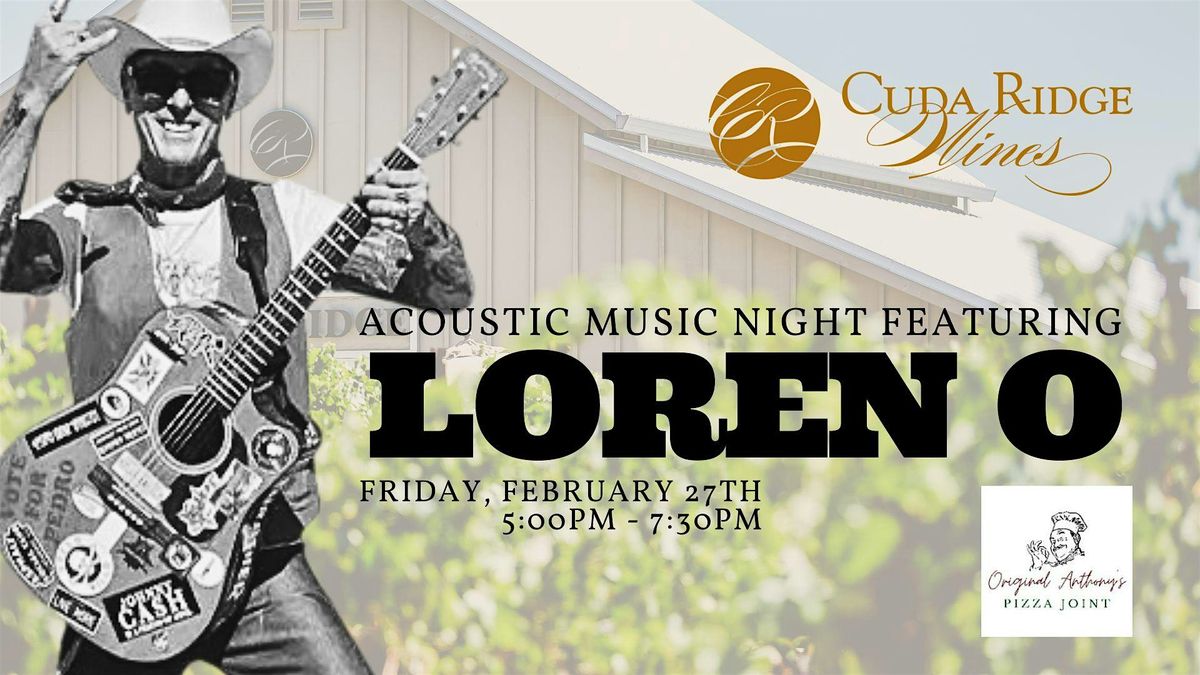 Join us for an evening of live music with Loren O at Cuda Ridge Wines on Friday, February 27th, from 5:00–7:30 PM. Relax with a glass of wine in hand as Loren O performs an eclectic set perfect for an easygoing night at the winery.