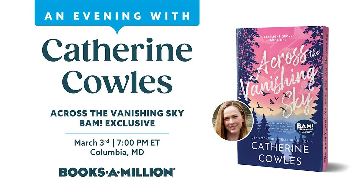 Join Books-A-Million for a special event with USA TODAY bestselling author Catherine Cowles as she launches Across the Vanishing Sky, the heart-pounding first book in her new Starlight Grove series. With Catherine’s signature blend of gripping tension, emotional intensity, and unforgettable characters, this series opener is sure to become your next obsession.