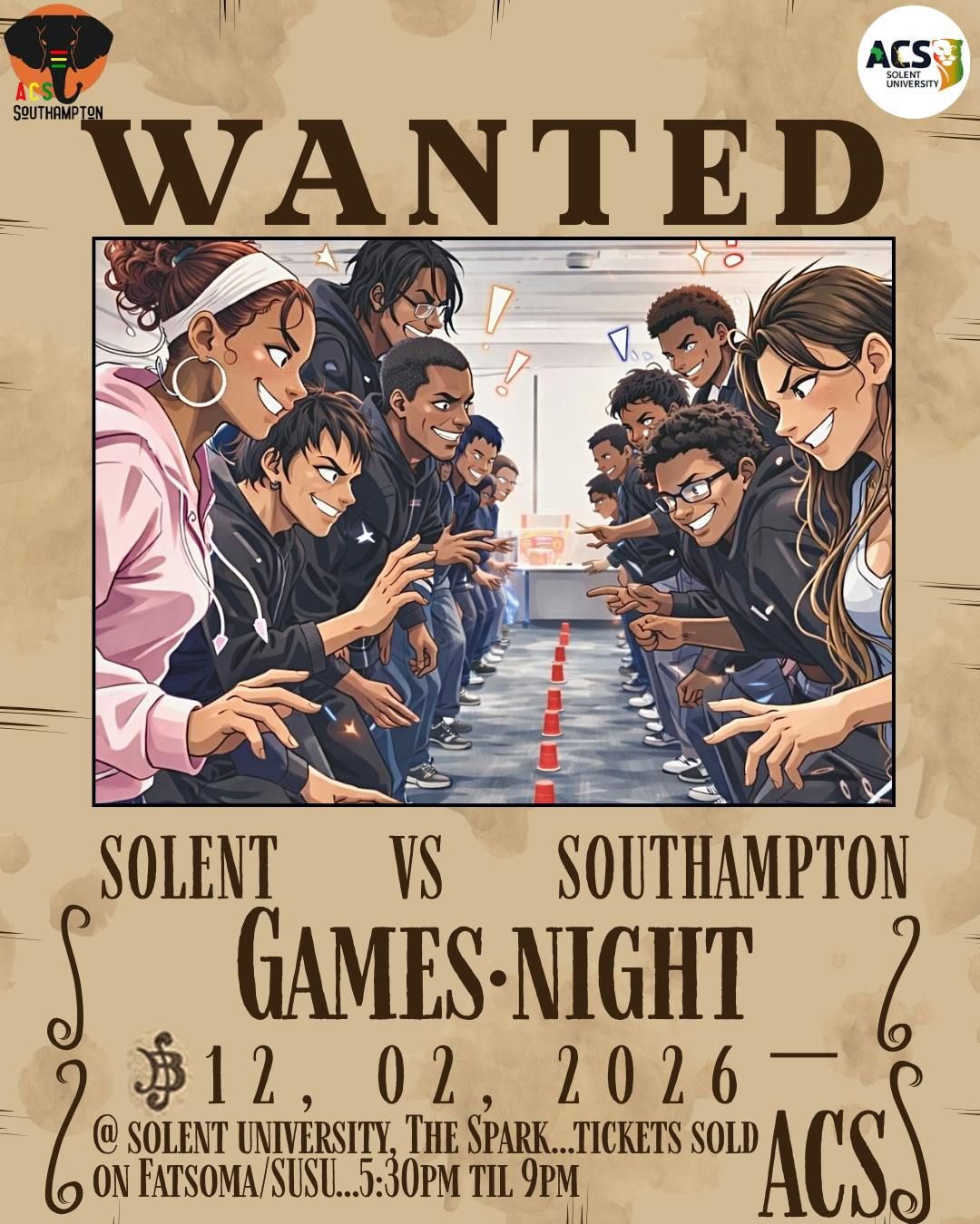 WE GO AGAIN FOR ROUND 2!!! ACS Solent and ACS Southampton bring to you Games Night part 2. Time to reveal who is the better university once and for All. You best get to practicing 👀.Disclaimer: