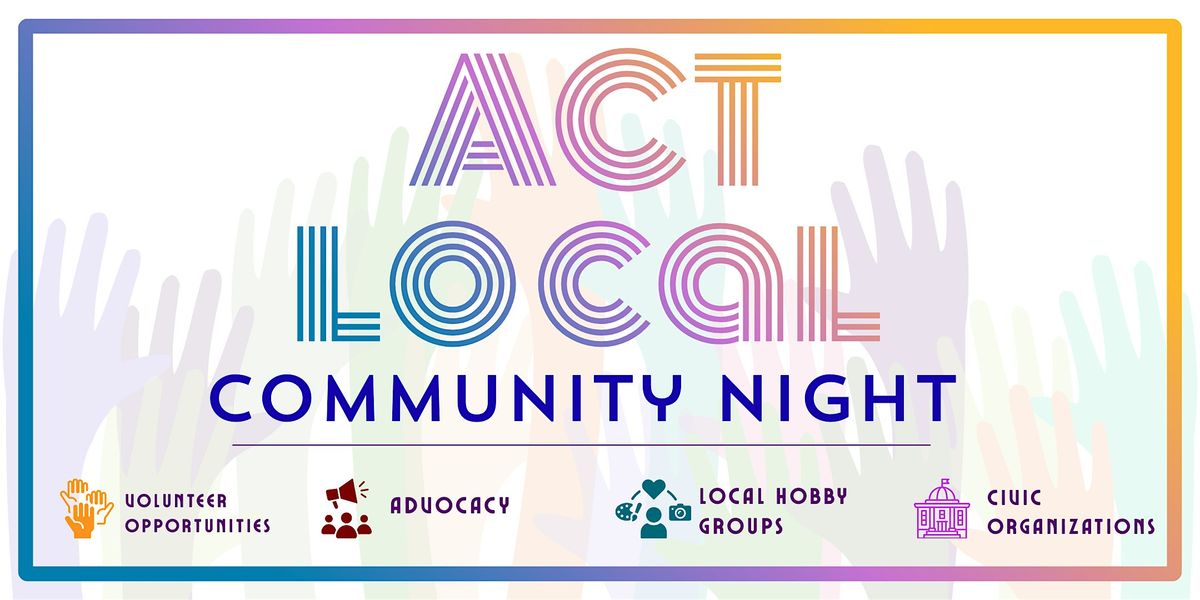 Act Local Community Night is a free, open-house event designed to help you discover ways to get involved and engaged in your community.