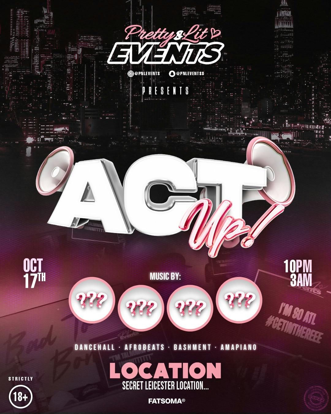 PNL PRESENTS: ACT UP – LEICESTER’S BIGGEST NIGHTTIME RETURN 🔥Pretty and Lit Events is officially back in Leicester — and we’re coming harder than ever with our signature nightlife experience. 🎇🎆