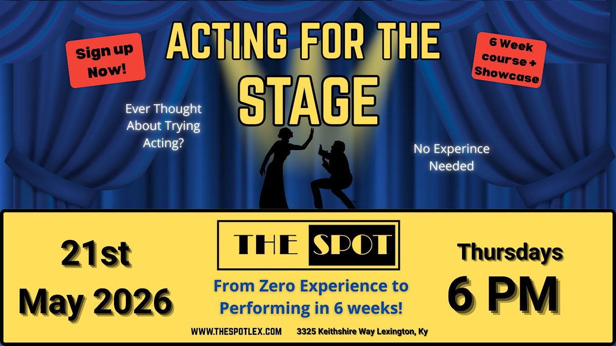 By the end of the course, you’ll perform a live scene on stage at The Spot:Lex in front of a real audience.
