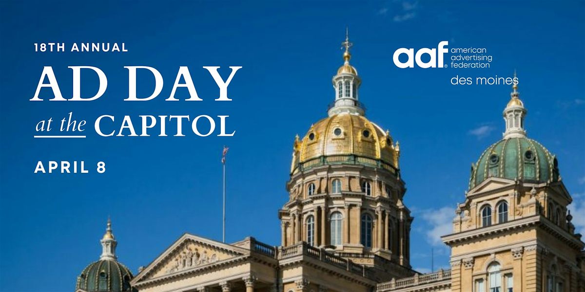 Ad Day at the Capitol is a morning advocacy program hosted annually at the state capitol by the AAF of Des Moines for the advertising industry. During our time at the Capitol, we hope to meet with various legislators from the Iowa Senate and House to discuss our industry and the important role advertisers have in the state of Iowa. The event is free for all legislators, members and industry leaders.