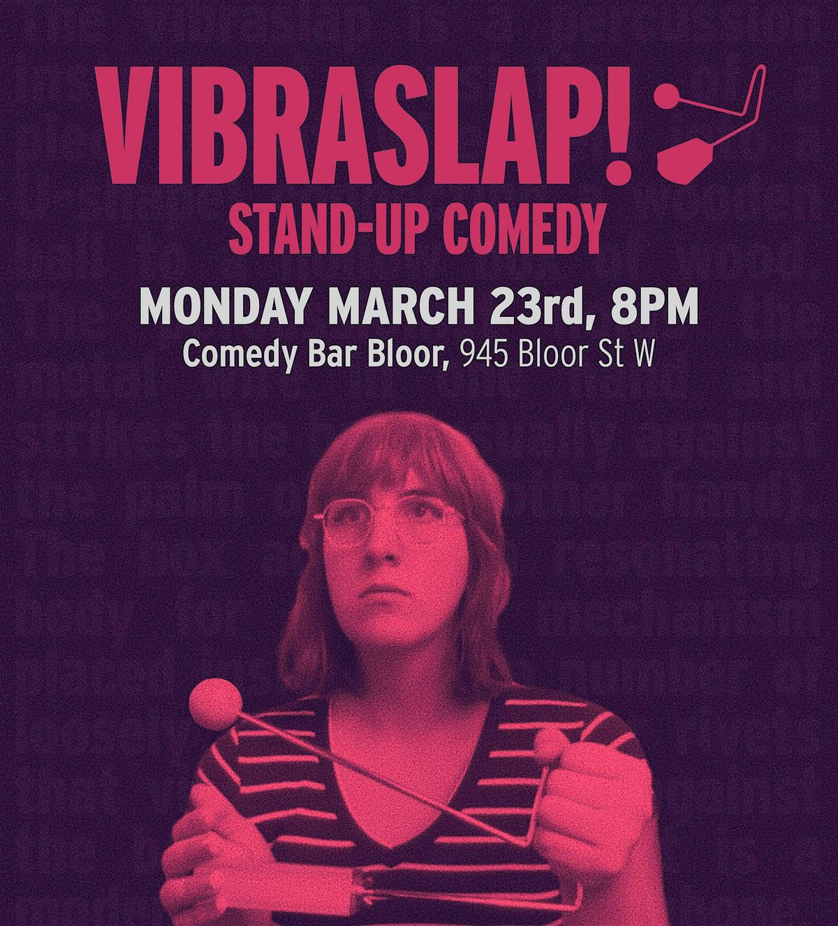 Hosted by comedian and crossword writer Ada Nicolle (Guelph Comedy Festival, 6.9M+ Instagram views @adanicklmao), Vibraslap! is your next favourite alt-comedy show in Toronto. Ada's chosen some of her favourite stand-up comedians and now you get to see them perform live before they blow up :)