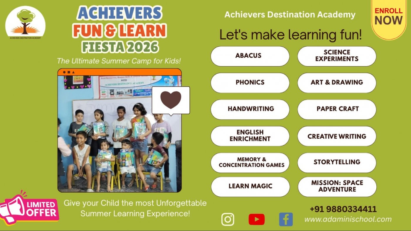 Looking for a fun and engaging summer camp for kids in Near Town Railway Station, Salem? Enroll your child in this exciting Kids Summer Camp, specially designed to combine learning, creativity, and fun for young minds.