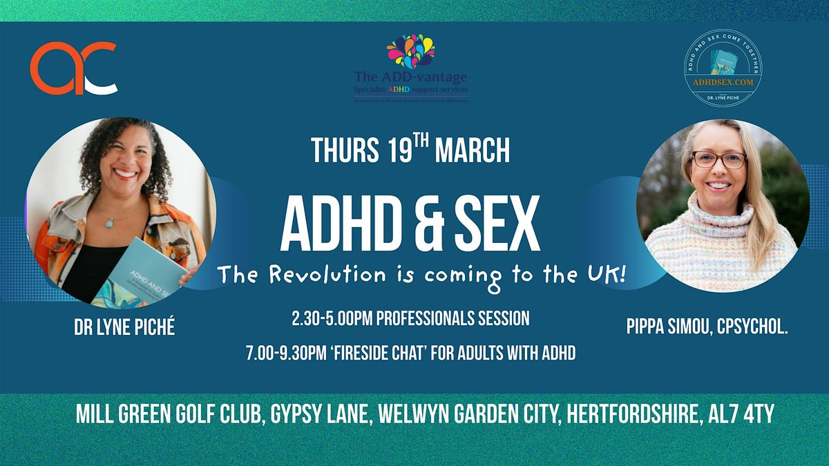 In collaboration with ADHD Care (https://www.adhdcare.co.uk/) The ADD-vantage (www.theadd-vantage.co.uk) is very excited to be facilitating 2 separate sessions on ADHD & Sex with Canadian based expert practioner and speaker Dr Lyne Piché (www.drlynepiche.com/adhd-and-sex). Lyne is the author of 'ADHD & Sex: A workbook for Exploring Intimacy and Sexuality'.