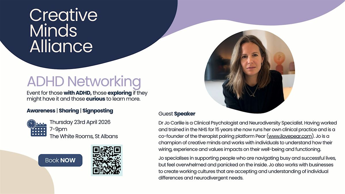 Expect lighthearted networking, useful resources and a safe, supportive space to talk openly about ADHD.