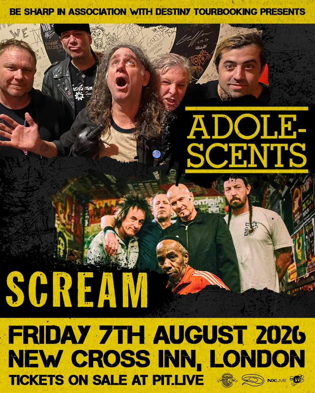Adolescents & Scream Double Headliner AdoloescentsSeminal American hardcore punk band from Fullerton, California,ScreamAmerican hardcore punk band formed in 1979 in Arlington, Virginia. Part of the early Washington, D.C. hardcore scene alongside bands like Minor Threat and Bad Brains, they became known for their high-energy sound and relentless touring. The band’s lineup included brothers Pete and Franz Stahl, bassist Skeeter Thompson, and drummer Kent Stax, with Dave Grohl joining as drummer in 1986.Disclaimer:
