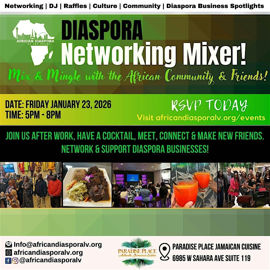 Join us on Friday, September 5, 2025, at 5PM at Paradise Place Jamaican Cuisine for the upcoming ADOLV Diaspora Networking Mixer! Mix & Mingle with the African Community & friends.