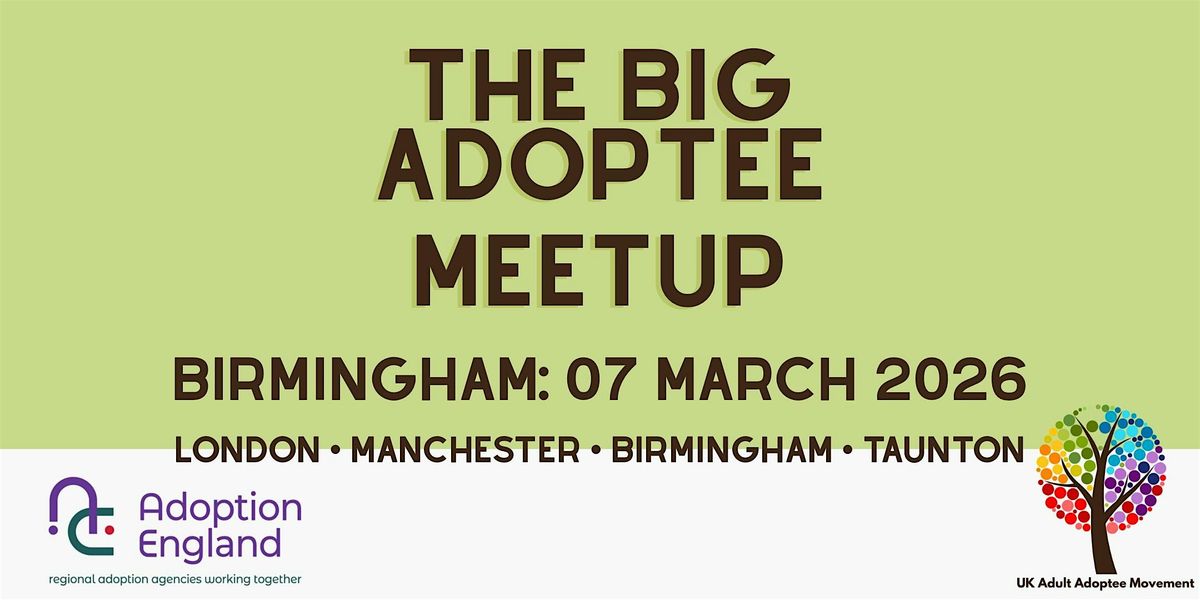 The Big Adoptee Meetup is sponsored by Adoption England from their their Community Development Fund, with additional support for this event from Adopt Central England. Other meetups will be held in London (24 January), Manchester (28 February), and Taunton (14 March) for adoptees local to those areas.