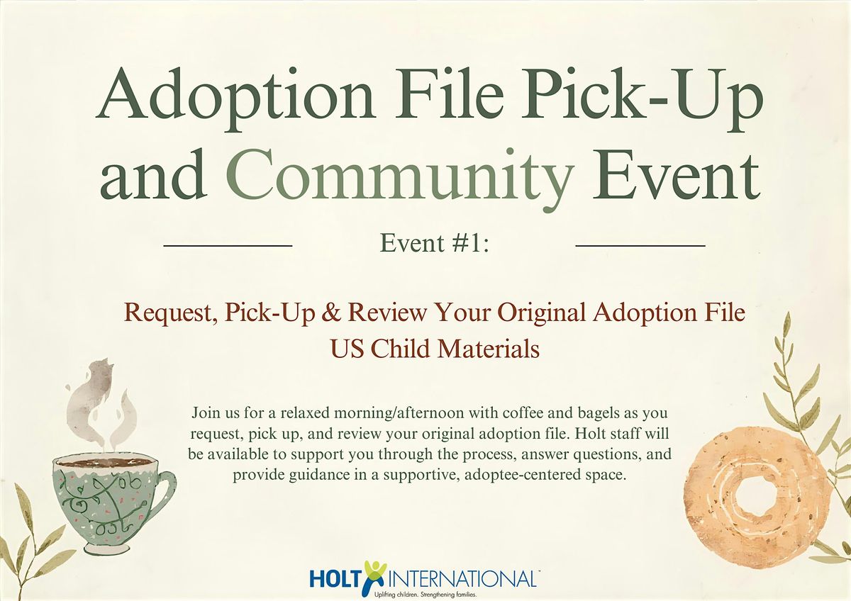 Event #1: Request, Pick Up & Review Your Original Adoption File (US Child Materials) - Hosted by Holt's Post Adoption Services Department