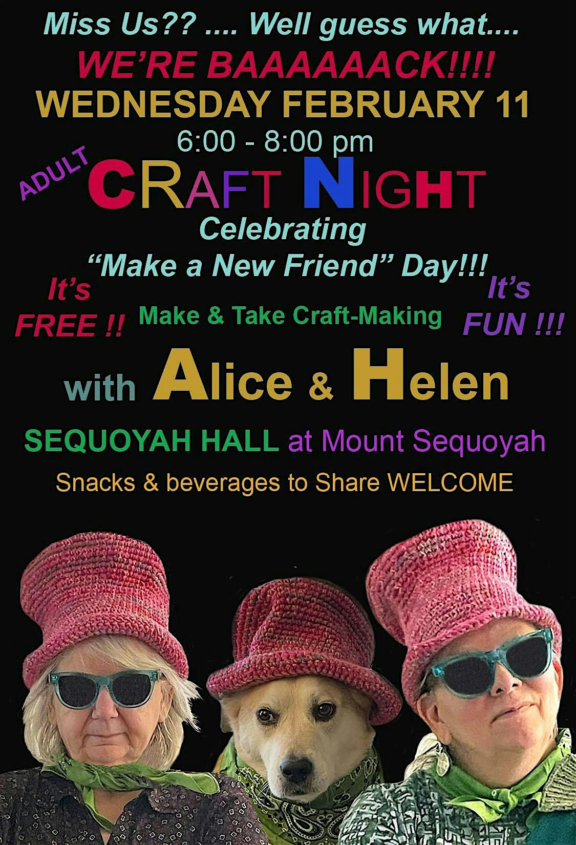 Come connect with friends, learn a new craft, and enjoy a creative evening at Mount Sequoyah!