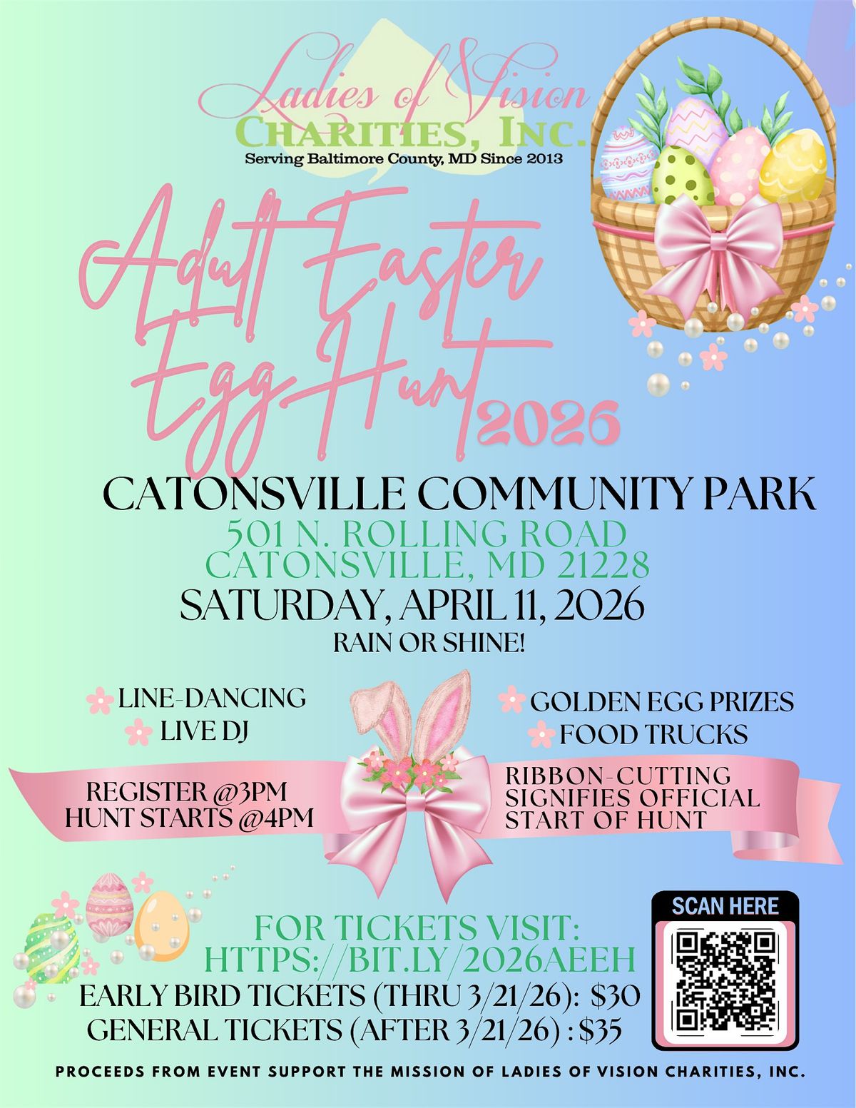 Our Annual Adult Easter Egg Hunt returns on Saturday, April 11, 2026 at Catonsville Community Park — and this year we’re elevating the experience in a whole new way.