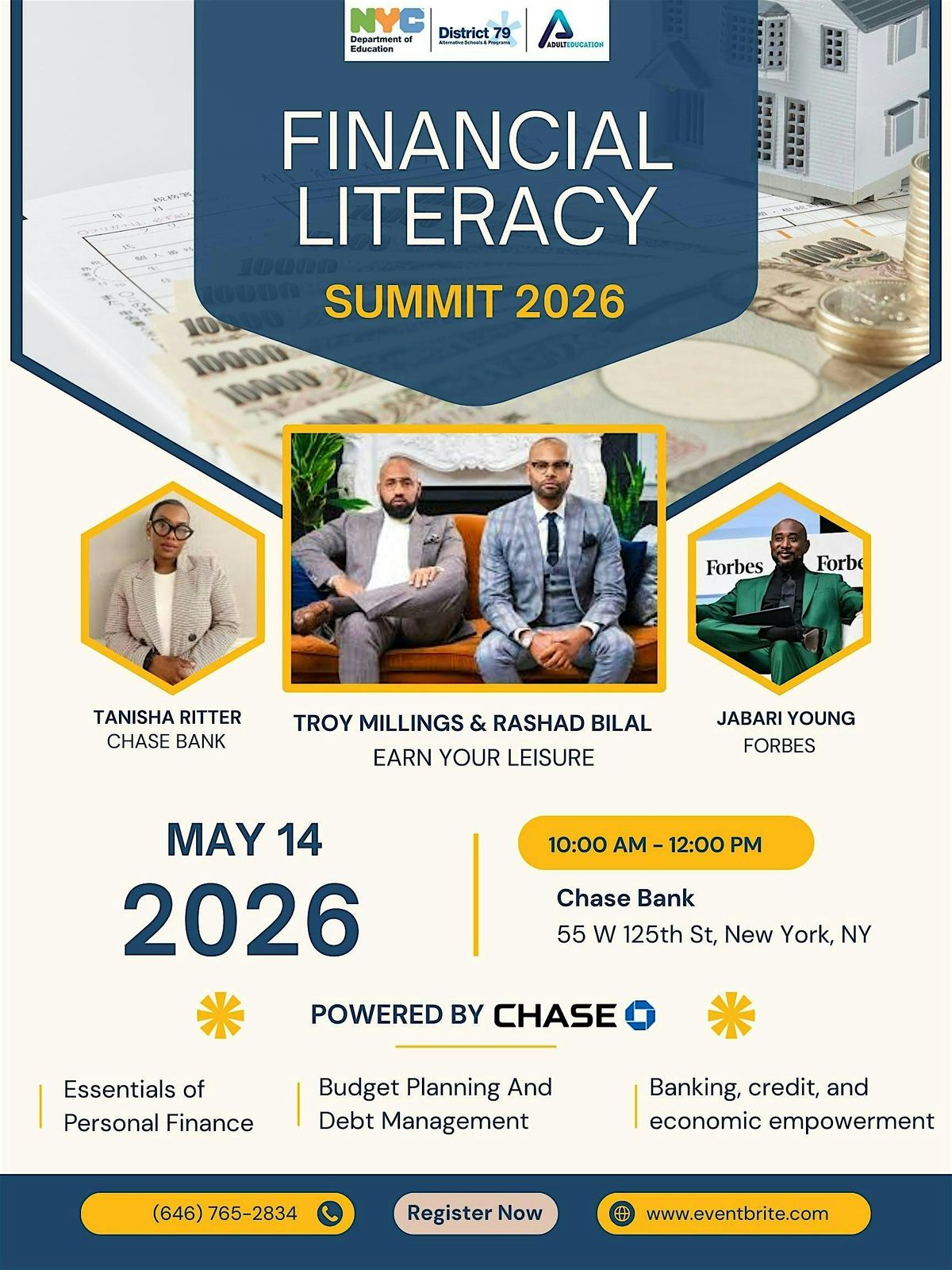 Join District 79 Adult Education for a powerful Financial Literacy Summit designed to equip adult learners with the tools, knowledge, and confidence to build long-term financial stability. This dynamic experience will feature nationally recognized financial educators Rashad Bilal and Troy Millings of Earn Your Leisure, moderated by Jabari Young of Forbes Magazine, and hosted in partnership with Chase Bank.