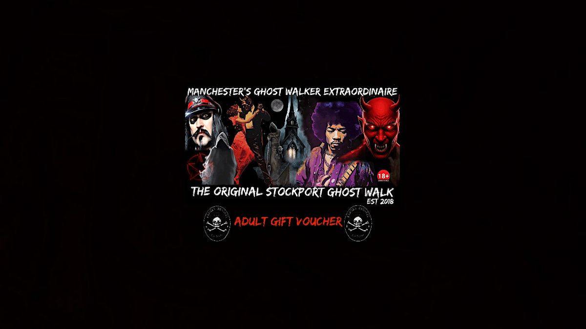 PLEASE NOTEVOUCHERS ARE VALID FOR 12 MONTHS FROM DATE OF PURCHASE.PLEASE IGNORE ANY OTHER DATES DISPLAYED ON THE GIFT VOUCHERWe all love weird, wonderful and ghostly stories!And when the stories are based upon well documented accounts, witness statements and Flecky’s own personal experiences, they then take on a new life (and Death) of their own.Allow FleckyBennett to welcome you onto his award winning Stockport Ghost Walk, a firm favourite with Locals, tourist and weirdos, since 2018.Join your ghost host Flecky Bennettfor a performance in the oldest part of Stockport.image Follow Flecky Bennettup the red sandstone cliffand into Stockport Old Town.The performance starts outside the wonderful Plaza Theatre,and then Flecky will guide youUp the steps and down to the depths!As you rise 256 feet above sea level expect to listen tohistory, strange and funny stories, and ghosts!From Mad Hatters to Haunted Taverns, Devils, Dancehalls and DungeonsFlecky is described as the Ghost Walker Extraordinaire by Visit Manchester and with a completely unique style. He will entrance you with his dark humour and passion for his subject.Expect 120 minutes (including 30 minute interval)of spooky fun in the company of Flecky!STRICTLY ADULT (18+) ONLY