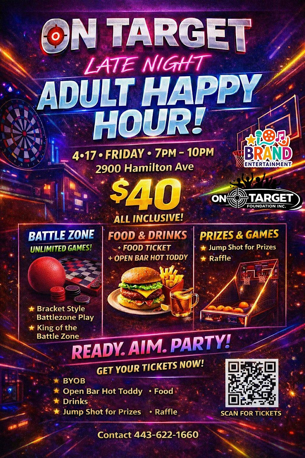 Late night adult happy hour with games, food, drinks, prizes, and nonstop fun—April 17 from 7-10 PM. $40 all-inclusive.About this Event