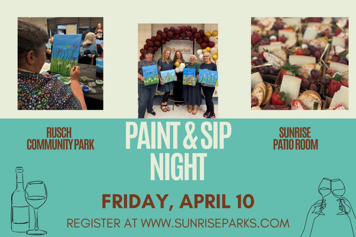 Celebrate the beauty of Spring with a fun filled evening of art, wine and relaxation at our Paint & Sip event on April 10, 2026! We will be creating a colorful acrylic painting inspired by California's Superbloom. Our art instructor, Lynn Morrison, will be guiding us through the process.