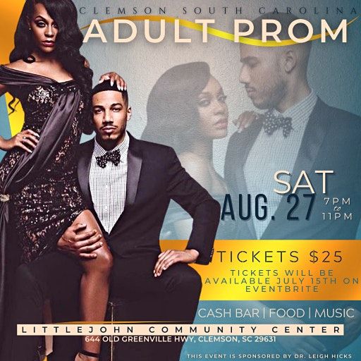 Come out to a grown party! Adult prom in Clemson, SC. Dress Code strictly enforced. Leave the drama at home!