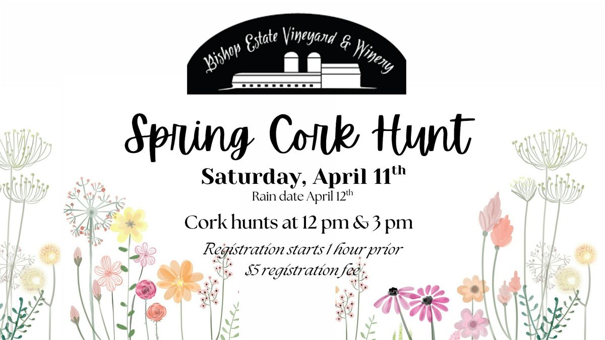 Join us on Saturday, April 11th (rain date Sunday, April 12th) for our annual Adult Spring Wine Cork Hunt at Bishop Estate Vineyard & Winery!