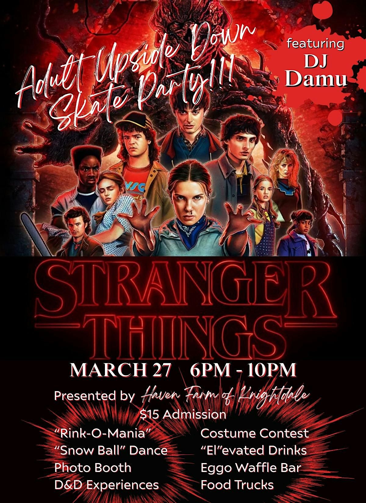 Come dressed in your best Upside Down–inspired outfit, bring your friends, and get ready for a night of skating, dancing, and immersive fun.