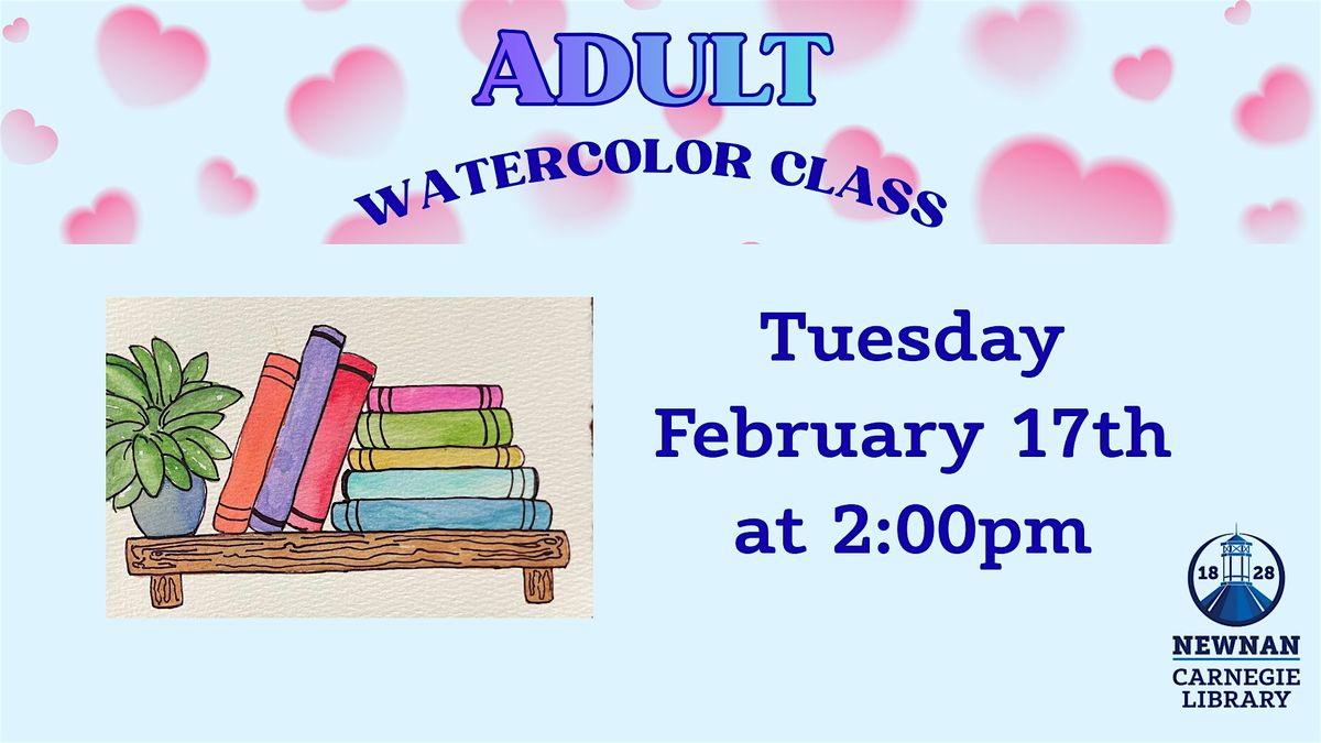 Please join Ms. Elizabeth at the Newnan Carnegie Library to practice watercolor skills. We will be painting a fun bookshelf painting while learning about layering watercolor for effect. These cute images can be used for cards or fun displays, however you'd like!