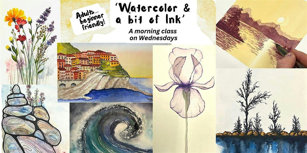 ADULTS-Morning 'Watercolor and a Bit of Ink' Class-- Beginner-friendly!