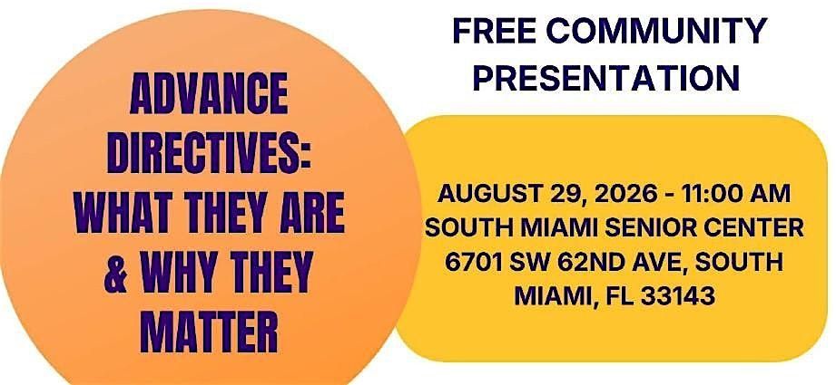 Join us for an important and informative session with a member of the FIU Medical Faculty who will explain directives, living will, etc.