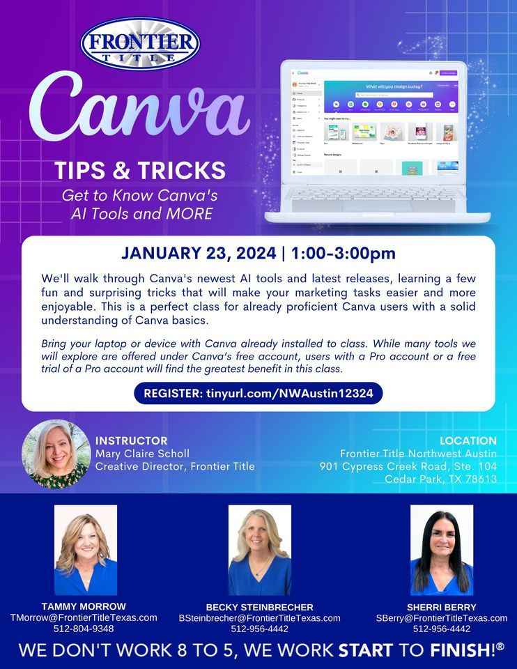 We'll walk through Canva's newest AI tools and latest releases, learning a few fun and surprising tricks that will make your marketing tasks easier and more enjoyable.This is a perfect class for already proficient Canva users with a solid