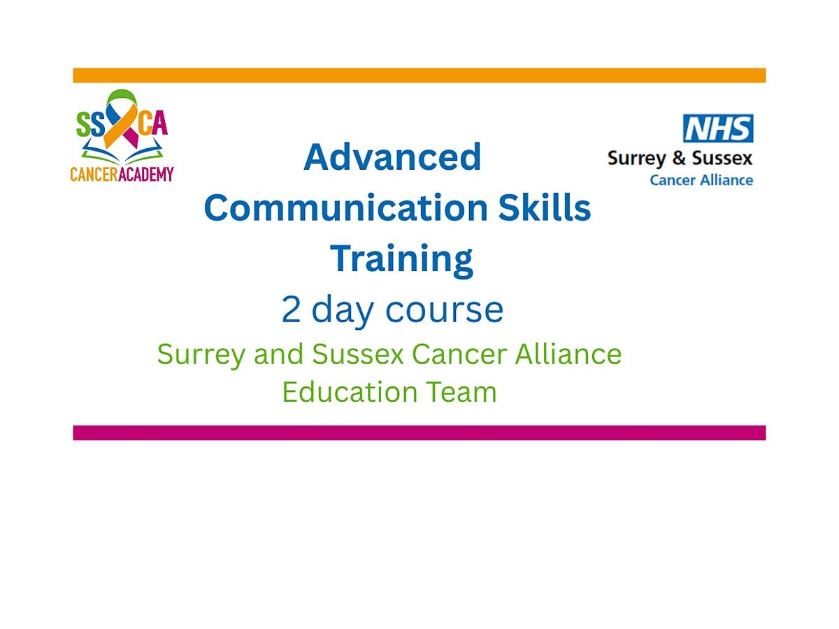 Advanced Communication Skills Training (ACST) is a 2-day experiential training, delivered through a blended learning approach by the Surrey and Sussex Cancer Alliance Education Team. Through attendance of this course, participants will advance their knowledge, skills and behaviours in confident communication with patient’s, families and members of the Multidisciplinary Team (MDT), across a variety of different scenarios. Participants will be prepared and supported throughout this course through dedicated 1:1 support from the course facilitators, and a pre-learning workbook.