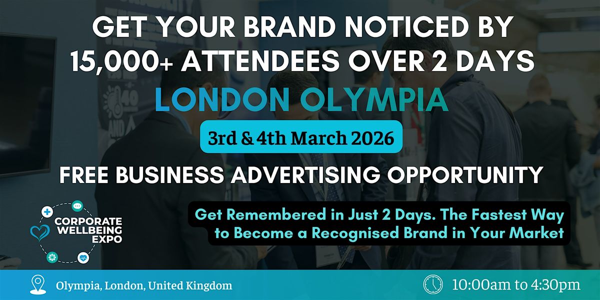 You are invited to take advantage of a limited-time FREE brand visibility opportunity at the Corporate Wellbeing Expo, London, UK — one of the UK’s leading business wellbeing-focused events, taking place on 3rd & 4th March 2026.