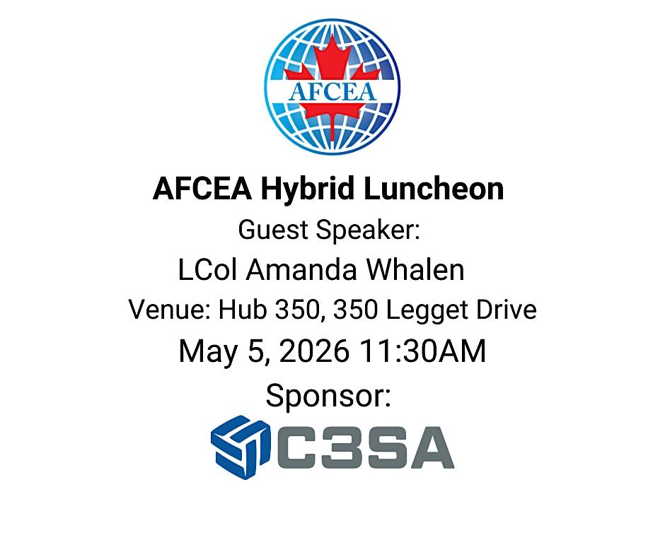 Join us for an exciting luncheon featuring LCol Amanda Whalen. This hybrid event will be held at Hub 350, 350 Legget Drive Kanata, Ontario K2K 0G7
