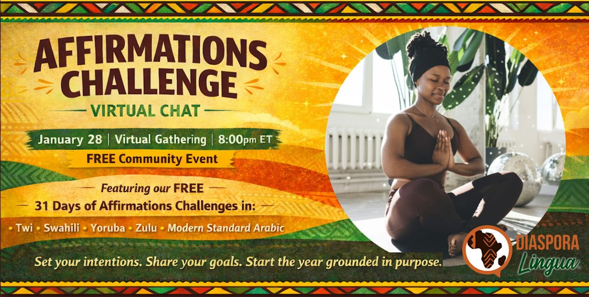 Join us for a powerful Affirmations Challenge Virtual Chat, a free community gathering designed to bring together people of the African diaspora to reflect, reset, and align their goals for the year ahead.