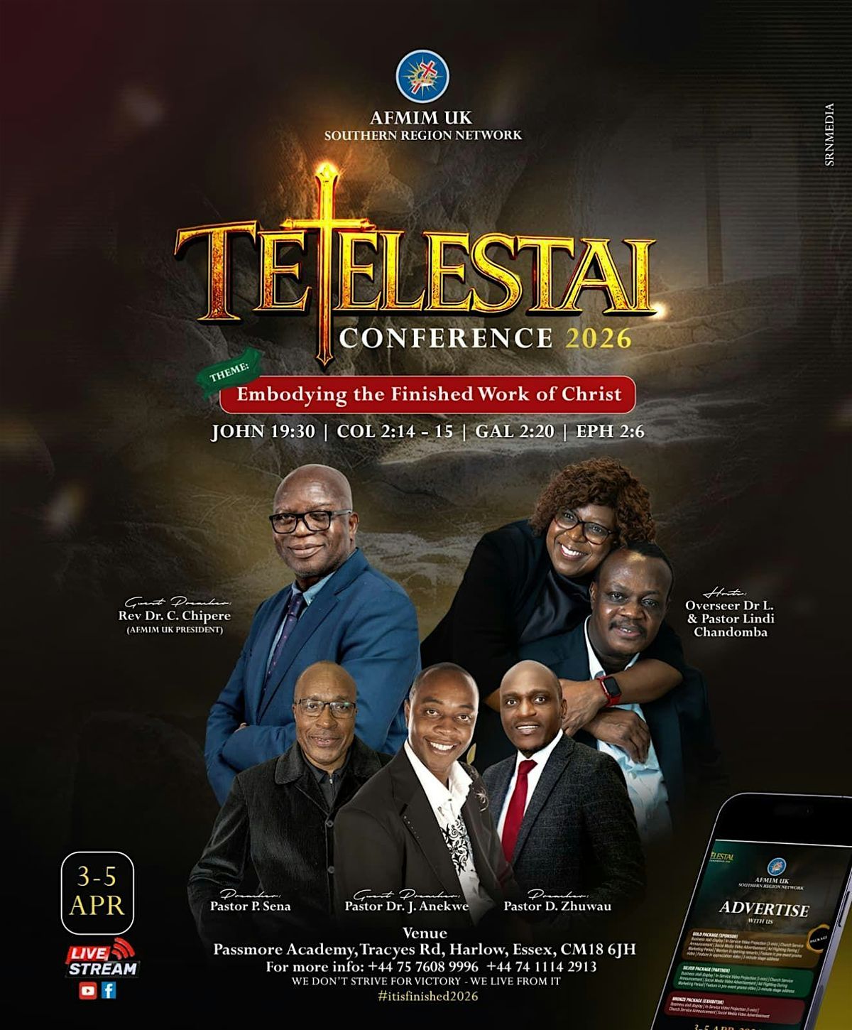 This in-person gathering will be a time of spiritual renewal, divine inspiration, and deep fellowship in the presence of the Lord.and Spirit-filled sessions, we will reflect on the finished work of Christ - Tetelestai: “It is finished.” Together we will grow in faith, strengthen our relationship with God, and be encouraged to walk boldly in our divine purpose. This conference is an opportunity to connect with believers, encounter the presence of God, and be uplifted spiritually in a warm and welcoming Christian community. Come with expectation. Come ready to receive. Come and experience the power of God. “It is finished.” – John 19:30