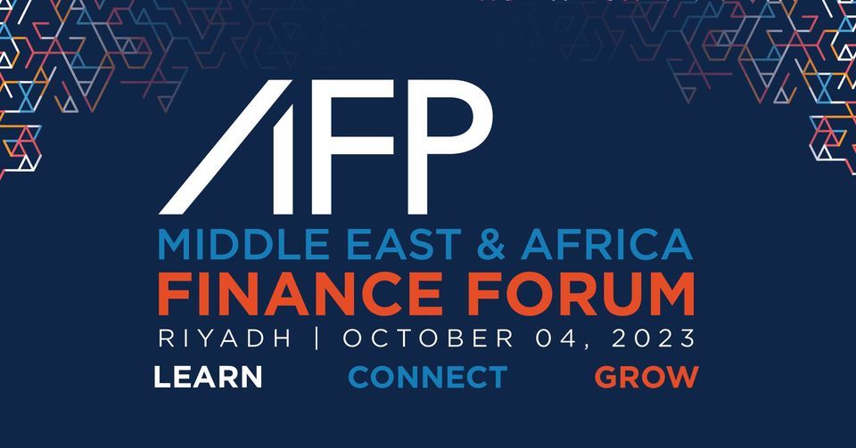 We're excited to announce the AFP Middle East & Africa Finance Forum, happening on [4-Oct-2023] at the Riyadh Marriott Hotel. This is the leading event for finance professionals in the Middle East and Africa, and we're thrilled to be bringing it to Saudi Arabia for the first time.The forum will feature over 600 attendees, more than 25 speakers, 2 keynotes, 2 talks, and 5 panel discussions. You'll have the opportunity to learn from the experts, network with other finance professionals, and get your questions answered.
