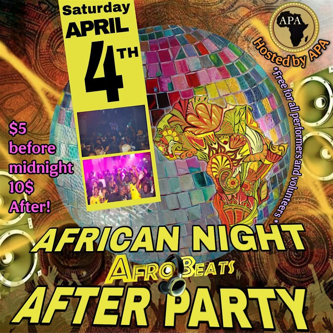 Get ready to vibe at the African Night: Dripped in Ankara - After Party! Rock your best Ankara fits and step into a night of nonstop music, dancing, and high energy. It's all about good vibes!