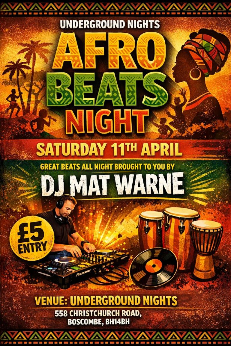 Weβre bringing the heat to Boscombe with an electrifying Afro Beats Night packed with infectious sounds, dancefloor energy, and feel-good anthems all night long.
