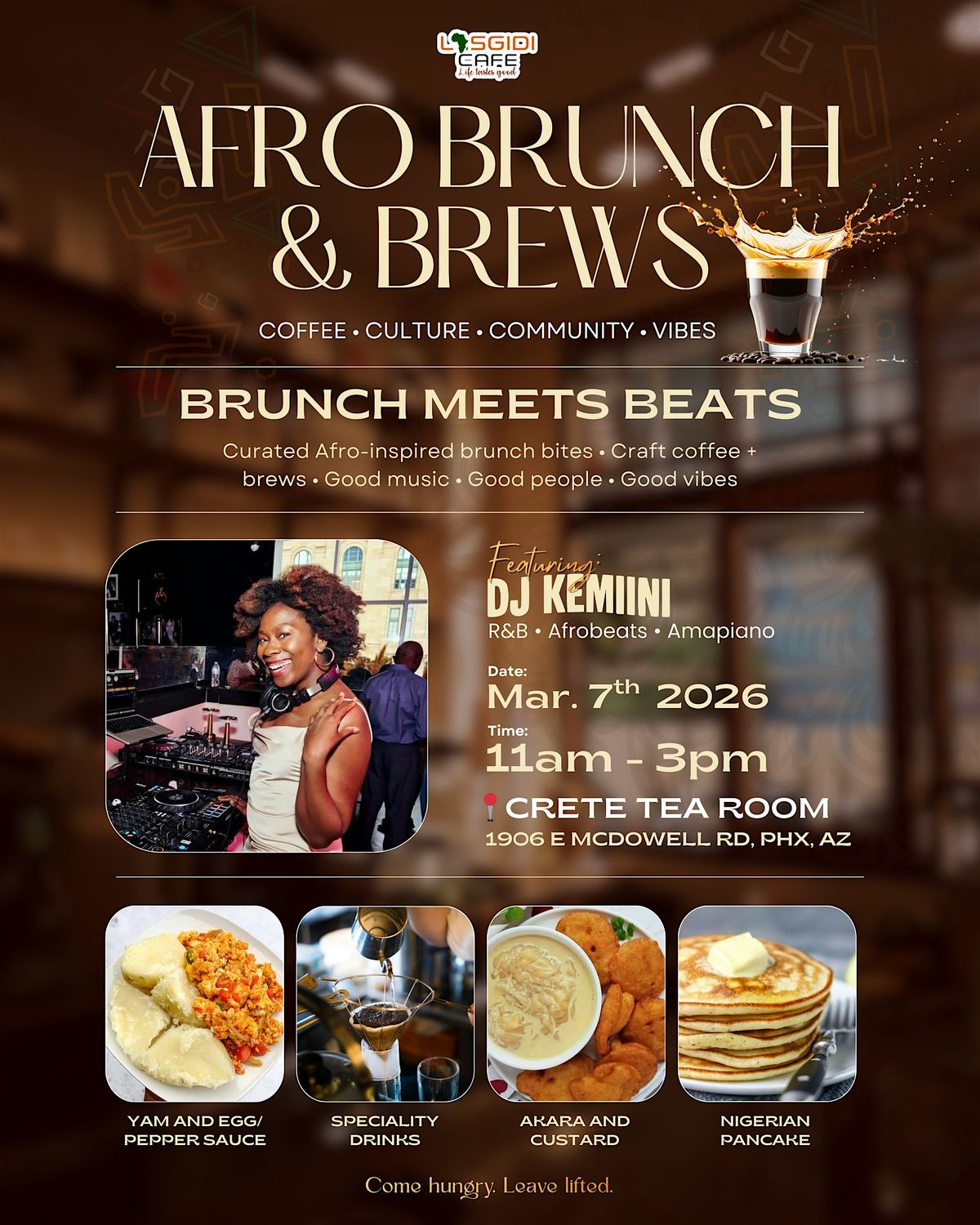 - Elevated Afro-inspired brunch crafted by award-winning Lasgidi Cafe