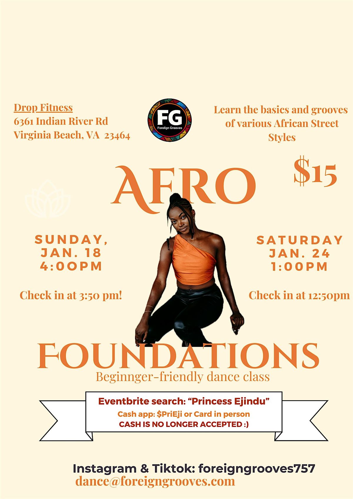 Follow our Instagram and TikTok for class updates: @/foreigngrooves757