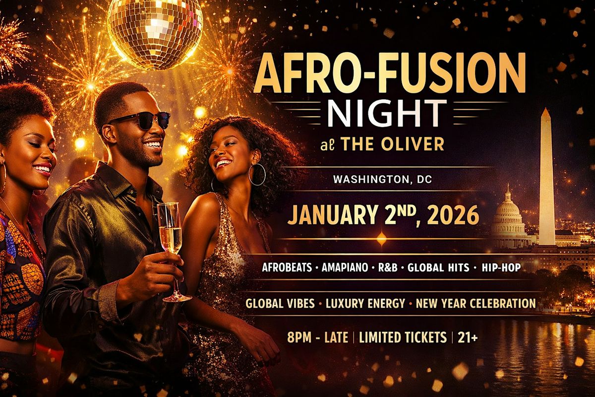 Kick off 2026 with style, rhythm, and unforgettable energy at Afro-Fusion Night at The Oliver — an elevated New Year celebration in the heart of Washington, DC.
