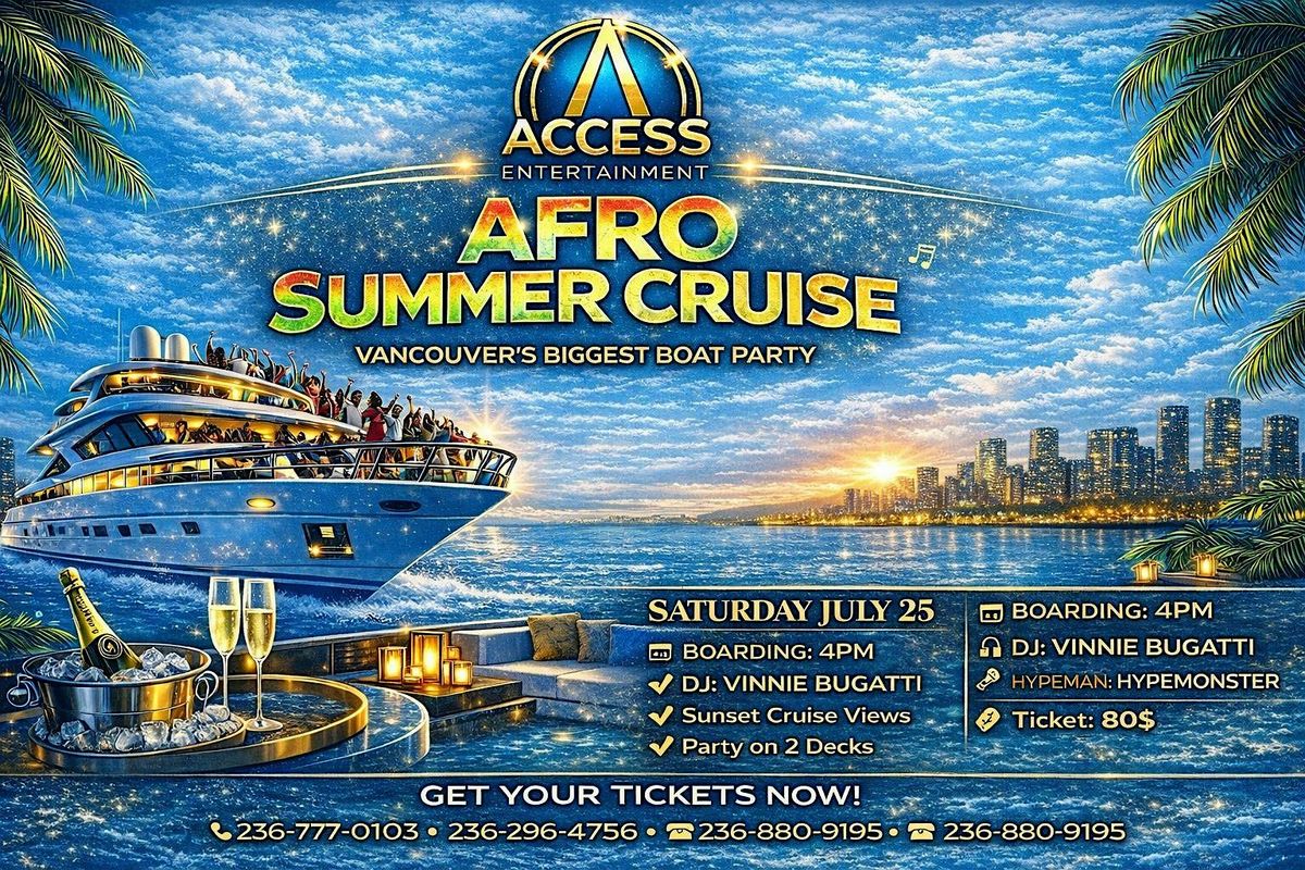 Get ready for the Biggest Afro Summer Boat Cruise in Vancouver! An unforgettable evening of music, culture, food, and great vibes on the water.
